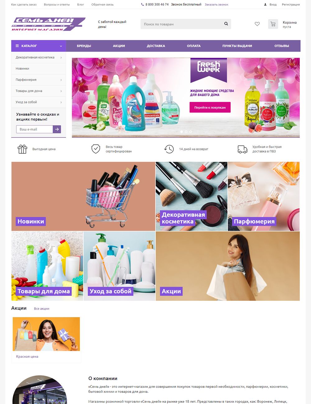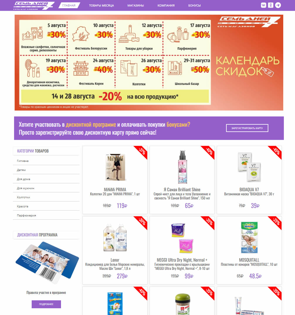 Сайт сети магазинов «7 ДНЕЙ»
